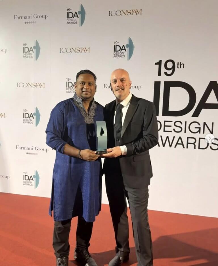 Jeffrey Andrews and Colin ‘Fred’ Fredricson pick up the IDA Award on a rainy night in Bangkok